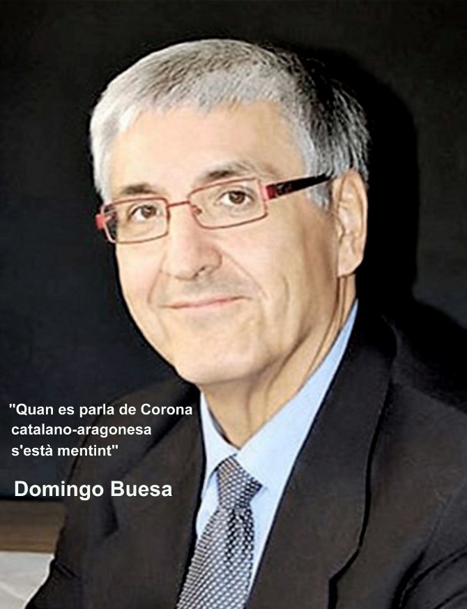El medievaliste Domingo Buesa subrallà: “Quan es parla de Corona catalano-aragonesa s'està mentint; eixa denominació és un destarifo”. I en la mateixa llínea, el catedràtic d'Història Medieval de l'Universitat de Saragossa i acadèmic de la Real Acadèmia de l'Història José Ángel Sesma senyalà: “Esta clase de martingala és molt habitual en certa historiografia catalana”.